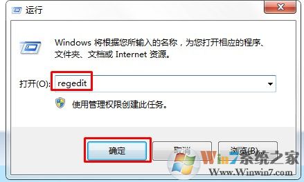 2.點擊屏幕左下角的“開始”按鈕,在文本框中輸入“regedit”進入,按enter鍵進入注冊表,