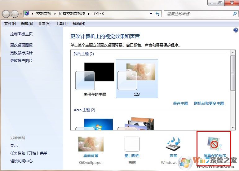 2、然后在彈出來的個性化頁面中選擇“屏幕保護程序”;