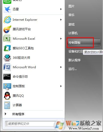 第一步、左鍵單擊右下角“開始”按鈕,找到“控制面板”。
