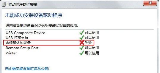 win7系統(tǒng)安裝打印機(jī)(掃描儀)提示未經(jīng)確認(rèn)的設(shè)備(未知設(shè)備)的解決方法: