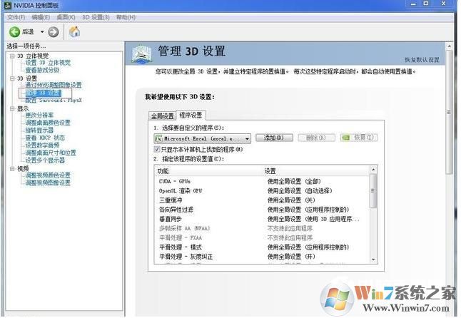 4、再找到3D設(shè)置里面的管理 3D設(shè)置會出現(xiàn)右面的框框,如下圖所示。
