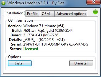 注意:Windows7激活器不能激活UEFI+GPT分區(qū),如果是uefi+gpt可使用UEFI+GPT Win7激活工具|NT6 OEM Loader V3.3.1綠色版