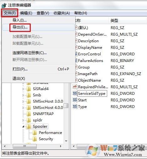 定位到HKEY_LOCAL_MACHINE_SYSTEM_CURRENTCONTROLSET_SERVICES_SPOOLER,導(dǎo)出注冊(cè)表為文件spooler.reg.