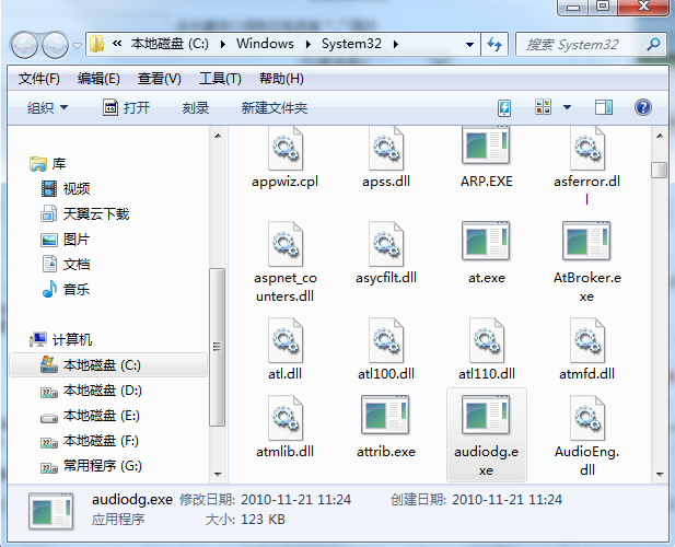 audiodg.exe對(duì)應(yīng)文件為:C:\Windows\System32\audiodg.exe 如果出現(xiàn)損壞可以到其他win7系統(tǒng)中拷貝并覆蓋。