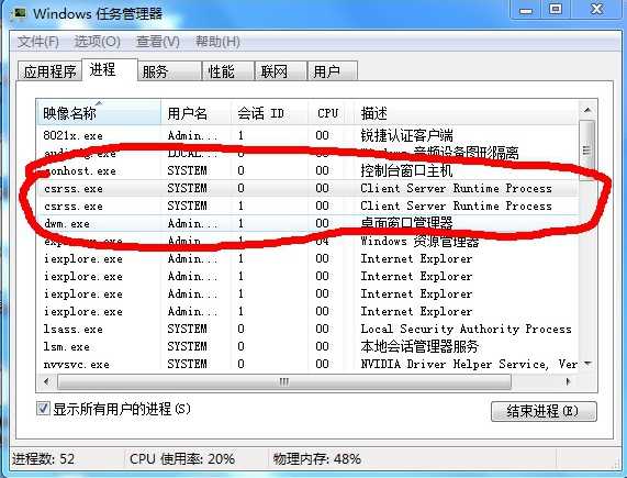 你查看下它的地址是否是 C:\WINDOWS\system32\csrss.exe 如果兩個中有一個不是這個地址 那么你的電腦中毒了 如果都是這個地址 那是正常的 是不同的用戶名 兩個名字一樣但不是一個進程 進程所代表的指令不一樣