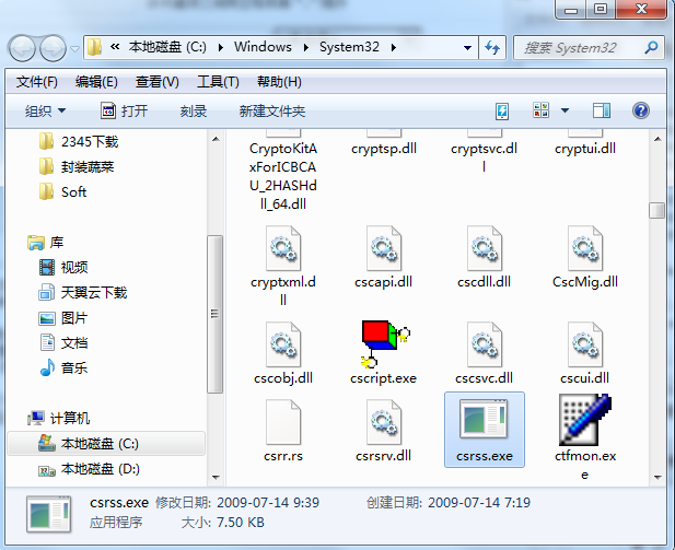 win7系統(tǒng)盤如:C\windows\system32\csrss.exe
