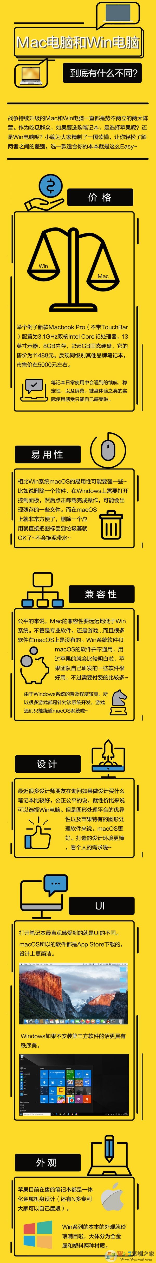 很多朋友再購買筆記本的時(shí)候都會(huì)考慮自己該買什么樣的電腦,以前只是考慮配置怎么樣就可以,現(xiàn)在多了一個(gè)一個(gè)考慮的問題那就是該買蘋果電腦MAC呢還是windows筆記本呢?很糾結(jié)的朋友就看看小編下面為大家提供的對(duì)比圖吧,一目了然(小編一點(diǎn)都部糾結(jié),畢竟小編買不起)