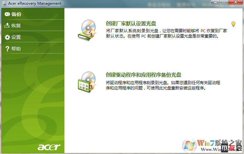 2.eRecovery Management:備份還原出廠系統(tǒng)和驅(qū)動應用軟件的。一般新機備份完了可以卸載了,備份系統(tǒng)需4張DVD,備份驅(qū)動及應用程序需1張DVD。