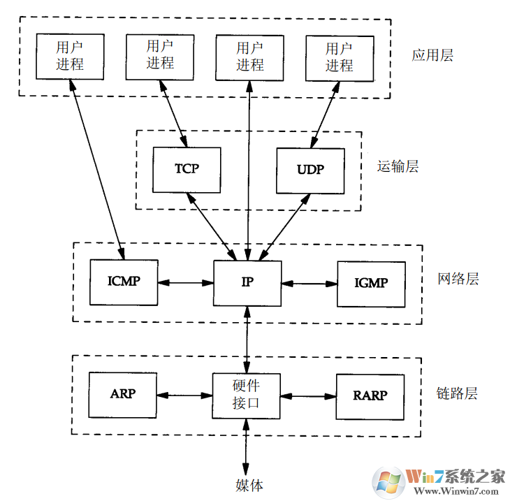 TCP/IP協(xié)議棧主要分為四層:應(yīng)用層、傳輸層、網(wǎng)絡(luò)層、數(shù)據(jù)鏈路層,每層都有相應(yīng)的協(xié)議,如下圖