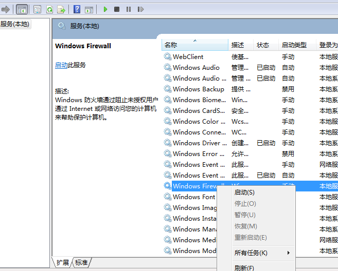 2、在服務(wù)頁面找到“windows firewall”服務(wù);