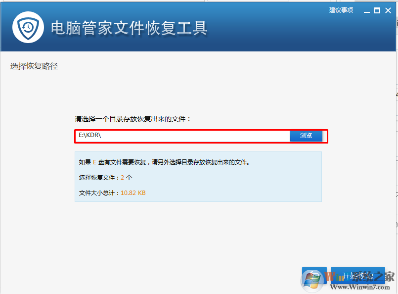 3、下載完成后,會自動啟動”文件恢復(fù)“小工具應(yīng)用程序。如果沒有啟動,再次點擊文件恢復(fù)的圖標(biāo),我們就可以看見如下圖的界面