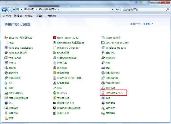2.打開控制面板之后,找到并打開“網(wǎng)絡(luò)和共享中心”這個選項。如圖二