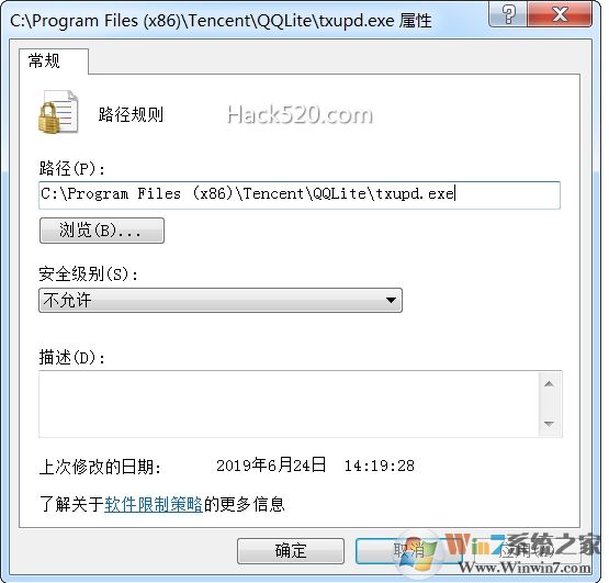 3、那就是設(shè)置組策略。開始,運(yùn)行,secpol.msc,依次點(diǎn)擊展開軟件限制策略-其他規(guī)則,右側(cè)點(diǎn)擊新建路徑規(guī)則,彈出對話框輸入該程序路徑,安全級別為“不允許”,點(diǎn)擊確定即可。本來每天都會彈出,今天終于沒有了,又起到了禁止它運(yùn)行的目的。