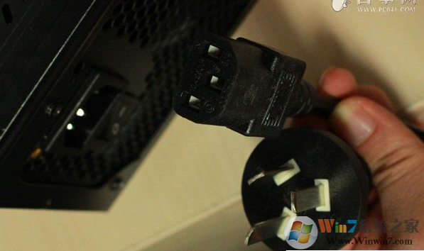 最后就是將電源線插入電腦機(jī)箱供電,然后把插入另外一端接入交流電插座。接下來(lái),準(zhǔn)備開(kāi)機(jī)測(cè)試了,如下圖!