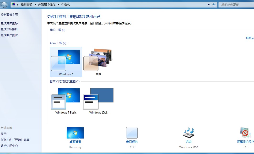 然后,從Win7個性化窗口中隨意更換一個主題就可以了。這樣,Windows7就會自動更新圖標緩存,自然也就解決了這個問題,簡單吧。