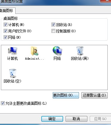有些朋友使用的是Win7家庭基礎版(Home Basic),不具備Win7主題更換功能那也不要怕,我們還是進入控制面板,然后點擊“更改桌面圖標”,點還原默認值就可以了。