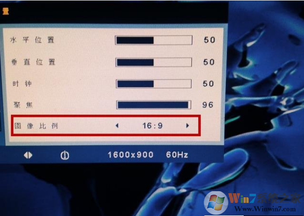 使用顯示器菜單按鈕調(diào)到圖像比例,一般有4:3跟16:9。調(diào)試到16:9。