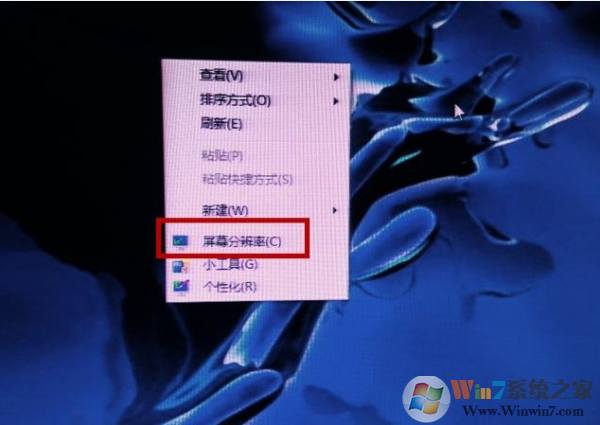 點擊桌面空白的地方然后右鍵選擇屏幕分辨率設(shè)置。