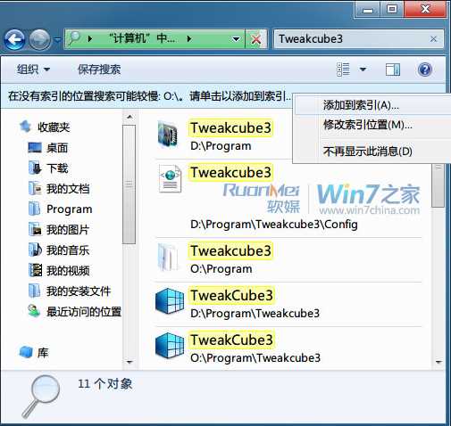 4、這時(shí)進(jìn)行搜索就不會(huì)出現(xiàn)索引未運(yùn)行的提示了,我們只要將搜索位置加入索引即可。
