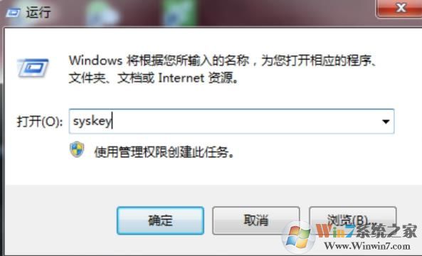1、按下“win+r”打開運行,輸入syskey。