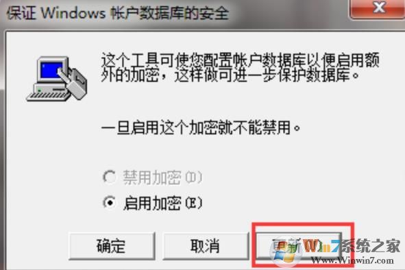 2、進入“保護windows賬戶數(shù)據(jù)庫的安全”后點擊“更新”。