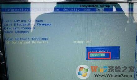 1、按開機鍵,等待開機畫面出現時按f2進入bios,點擊Exit,把OS optimized Defaults里默認Win8 64bit(或Win10 64bit)改成Other OS。