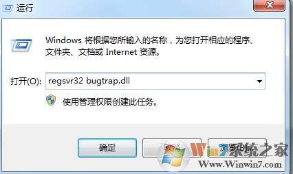 3、最后WIN+R,調(diào)出運行,輸入 regsvr32 bugtrap.dll 回車注冊即可。