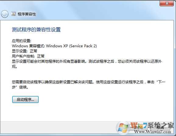 3、接下來按Win7自動設置的兼容性方案來啟動程序,啟動成功后即可保存設置。