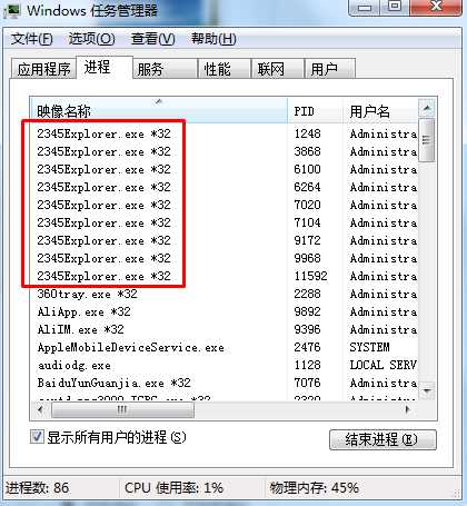 沒有關(guān)系,當你使用2345瀏覽器打開多個網(wǎng)頁后就會出現(xiàn)多個2345Explorer.exe進程,這和大家使用IE瀏覽器時會出現(xiàn)多個iexplore.exe進程是一樣的道理。