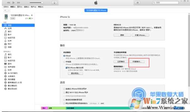 2、iTunes恢復(fù)單項(xiàng)數(shù)據(jù)
