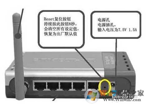 4、恢復(fù)路由器出廠設(shè)置很簡(jiǎn)單,只要按下路由器上的reset按鈕,可以使用別針或筆按住8秒左右,等待燈都亮一次后 就恢復(fù)完成。