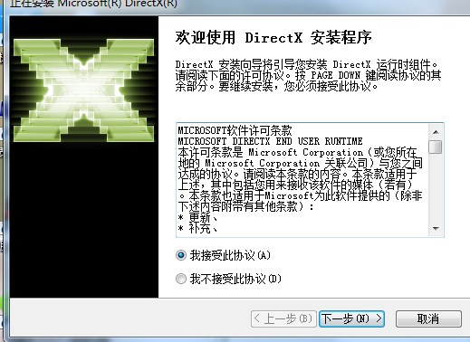 就能出來DirectX診斷工具安裝界面,接下來就可以安裝了、選擇接受協(xié)議,下一把即可,坐等安裝完成
