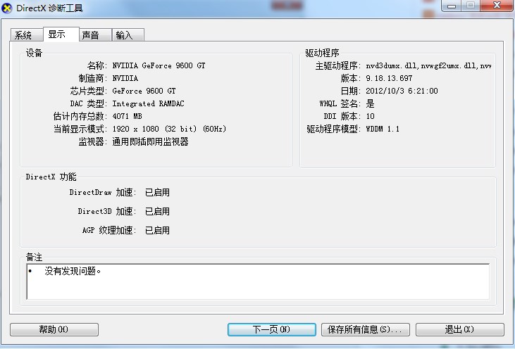 上圖有一個direce3d加速功能在不玩大型3D游戲的情況下是可以關(guān)閉的,對系統(tǒng)性能的提升會有幫助哦,具體請參考教程:Win7系統(tǒng)如何關(guān)閉3d加速功能 減輕GPU負(fù)擔(dān)的方法(輕擊連接即可進入)