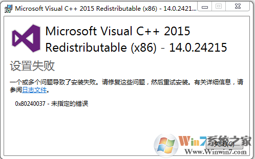 部分用戶在手動(dòng)下載安裝VC++2015運(yùn)行庫(kù)時(shí)會(huì)出現(xiàn)以下的錯(cuò)誤提示,導(dǎo)致運(yùn)行庫(kù)無(wú)法正常安裝,此類錯(cuò)誤的解決方法如下: