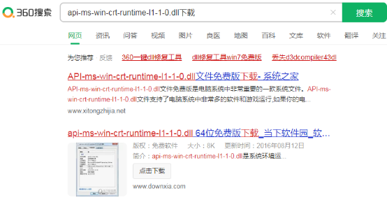 2. 打開瀏覽器搜索api-ms-win-crt-runtime-l1-1-0.dll下載
