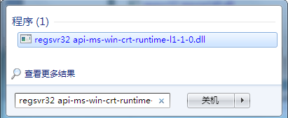 4. 打開桌面左下角運行輸入框輸入:“regsvr32 api-ms-win-crt-runtime-l1-1-0.dll”并回車即可解決。