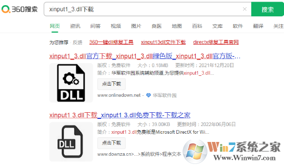 1.在瀏覽器中搜索xinput1_3.dll文件并下載解壓