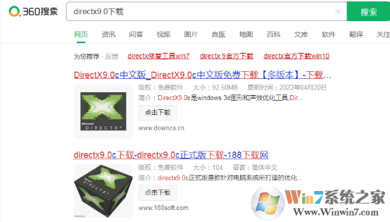 2.打開瀏覽器搜索對(duì)應(yīng)版本的directx9.0并安裝