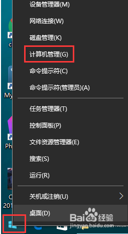 1、打開計(jì)算機(jī)管理軟件,右擊“開始”按鈕,在彈出的菜單中選擇“計(jì)算機(jī)管理”;