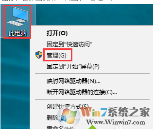 2、或在桌面右擊“此電腦”圖標(biāo),在彈出的菜單中選擇“管理”;