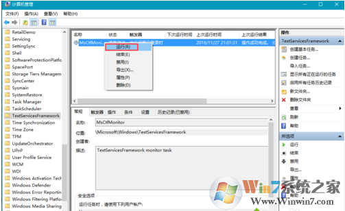 6、右擊“MsCtfMonitor”,點(diǎn)擊“運(yùn)行”。