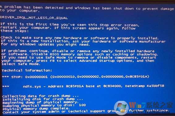發(fā)現(xiàn)錯(cuò)誤代碼是STOP: 0x000000D1(驅(qū)動(dòng)錯(cuò)誤)驅(qū)動(dòng)名稱為NDIS.sys。NDIS.sys是和網(wǎng)卡驅(qū)動(dòng)有關(guān)的文件