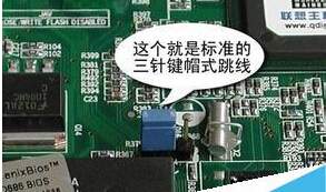 8、當(dāng)然,有些主板的計時電池是摳不出來的(導(dǎo)線焊接在電池上的),此時可以斷電,嘗試跳線(短路二、三線)清零(因?yàn)榘姹静煌梢园凑照f明書操作)。
