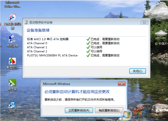 5、關(guān)閉注冊表編輯器,然后重新啟動,重啟后 安裝ahci的驅(qū)動會自動安裝,安裝完以后再重新啟動。