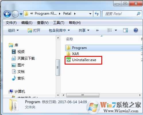 4、這時定位到了軟件的安裝文件夾,同時到上級目錄找到了卸載程序文件;