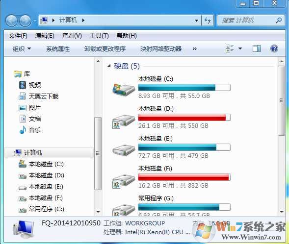 設(shè)置好注冊(cè)表后,注銷一下Win7系統(tǒng),磁盤顏色就重新回到藍(lán)色顯示,而不會(huì)顯示紅色了,不過可用空間還得用戶自己注意哦。