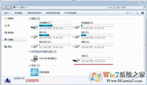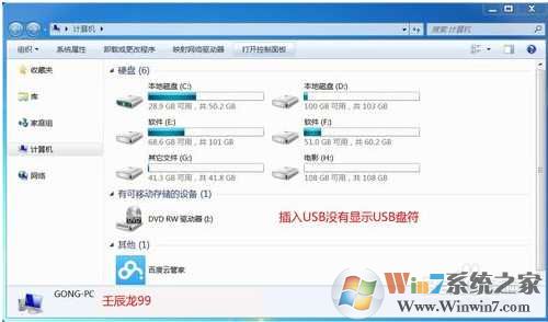 6、我們插入U(xiǎn)盤,就可以正常識別出U盤了,