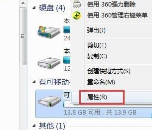 1、打開計(jì)算機(jī),右鍵點(diǎn)擊u盤,然后點(diǎn)擊屬性;