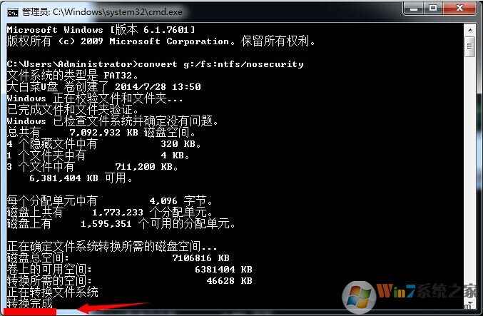 第一步:通常情況下我們的u盤格式都是FAT32的,我們首先把它轉(zhuǎn)換成NTFS格式。