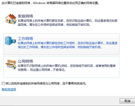 5、會(huì)跳出來每次連接新的網(wǎng)絡(luò)選折好模式后都會(huì)讓你選擇的具體功能,大家可以視自己的需要設(shè)置